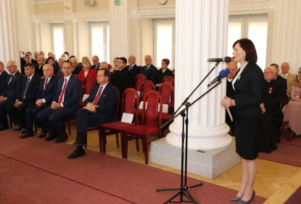 – Znajdujemy się dziś w niezwykle zaszczytnym gronie, wśród osób, które udowodniły, że Ojczyzna jest dla nich dobrem najwyższym, dobrem, o które trzeba walczyć i dla którego można wiele poświęcić. Osób, które walczyły o wolną i suwerenną Polskę w czasach, kiedy to polskie społeczeństwo długo i cierpliwie musiało znosić wszelkie restrykcje i ograniczenia jakie nakładała na nie władza ludowa, a wszelkie próby stawiania oporu, były szybko i krwawo tłumione. Jednak Polacy nie poddali się, a myśl sprzeciwienia się przyjętym porządkom coraz bardziej w nich dojrzewała. I wreszcie nadszedł pamiętny rok 1989 r., kiedy to polskie społeczeństwo po raz kolejny stanęło przed nowymi wyzwaniami, bowiem trzeba było na nowo przeorganizować funkcjonowanie państwa. Tutaj także obecni byli ludzie, którzy angażując się w prace na rzecz demokratycznych przemian, swoją postawą rozsławili dobre imię Polski oraz aktywnie włączyli się w budowę i wzmacnianie suwerenności i tożsamości narodowej – powiedziała wojewoda podkarpacki Ewa Leniart, gratulując wyróżnionym.