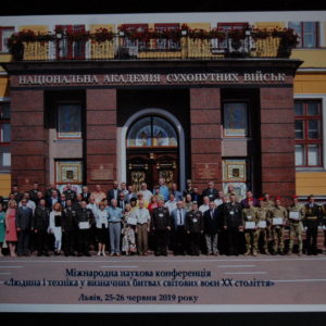W dniach 25-26 czerwca 2019 r. we Lwowie odbyła się międzynarodowa konferencja naukowa zatytułowana „Człowiek i technika na polach bitew wojen światowych” . Została ona zorganizowana przez Narodową Akademię Wojsk Lądowych Ukrainy im. P. Sahajdacznego we Lwowie przy współpracy z Uniwersytetem Rzeszowskim. Wzięło w niej udział 80 naukowców z Polski i Ukrainy, reprezentujących szerokie spektrum tematyczne swoich wystąpień – od obecnej sytuacji geopolitycznej na wschodzie Ukrainy, po zagadnienia historyczne z okresu obu wojen światowych i konflikty zbrojne po roku 1945 r. Obok naukowców z uczelni będących współorganizatorami tej konferencji, zaprezentowali się na niej także przedstawiciele z innych środowisk akademickich, m.in.: Akademii Sztuki Wojennej, Wojskowej Akademii Technicznej w Warszawie, Politechniki Rzeszowskiej, Uniwersytetu Adama Mickiewicza w Poznaniu, Państwowej Akademii Nauk Stosowanych w Przemyślu, Uniwersytetu Humanistyczno-Przyrodniczego w Częstochowie, Lwowskiego Uniwersytetu Narodowego im. Franki, Narodowego Uniwersytetu „Akademia Ostrowska”, Politechniki Lwowskiej, Narodowej Akademii Rolniczej Ukrainy, Wojskowego Instytutu Telekomunikacji i Informatyzacji, Żytomierskiego Instytutu Wojskowego im. Korolowa, Narodowego Uniwersytetu Obrony Ukrainy im. Czerniawskiego, Ukraińskiego Uniwersytetu Katolickiego.