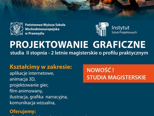 Już od października zapraszamy na nowo otwarty kierunek studiów II stopnia 2 letnich magisterskich. Wychodząc na przeciw oczekiwaniom, otwiera się możliwość kontynuowania nauki po licencjacie w naszej uczelni. Zajęcia odbywać się będą w nowo powstałych pracowniach i pomieszczeniach adaptowanych specjalnie dla Instytutu Sztuk Projektowych. Zapewniamy nowoczesny sprzęt i doskonale wyposażone pracownie jak też przyjazną, twórczą… Czytaj więcej »